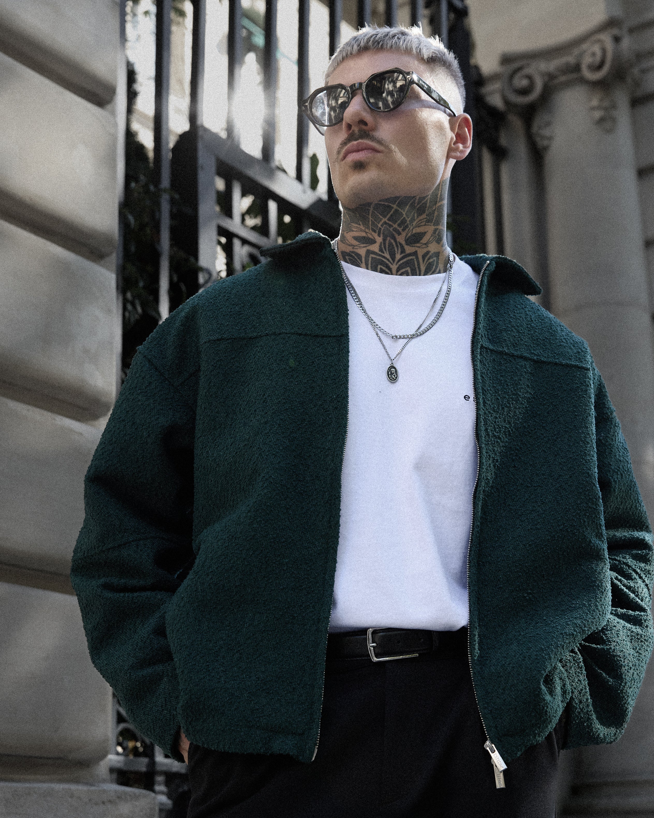 • DARKGREEN BOUCLÉ OVERSIZED JACKET