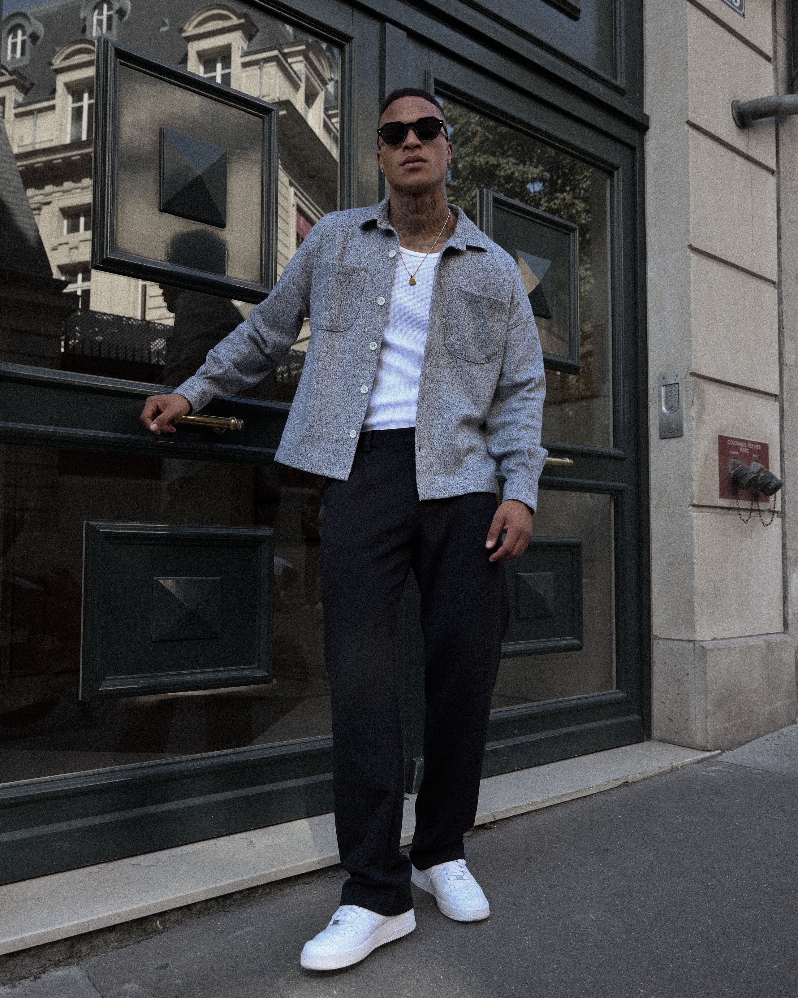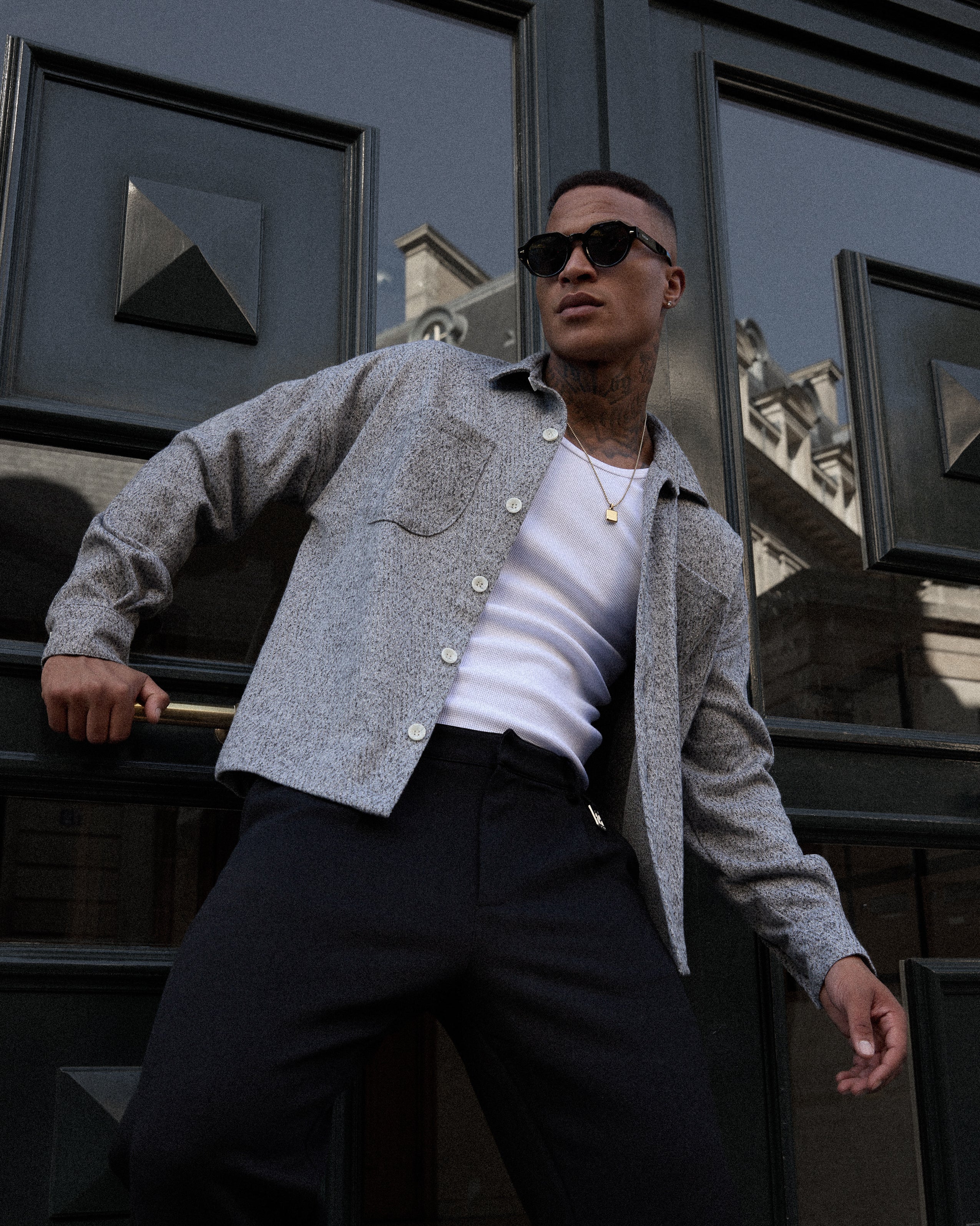 • GREY HERRINGBONE OVERSIZED FLANNEL SHIRT