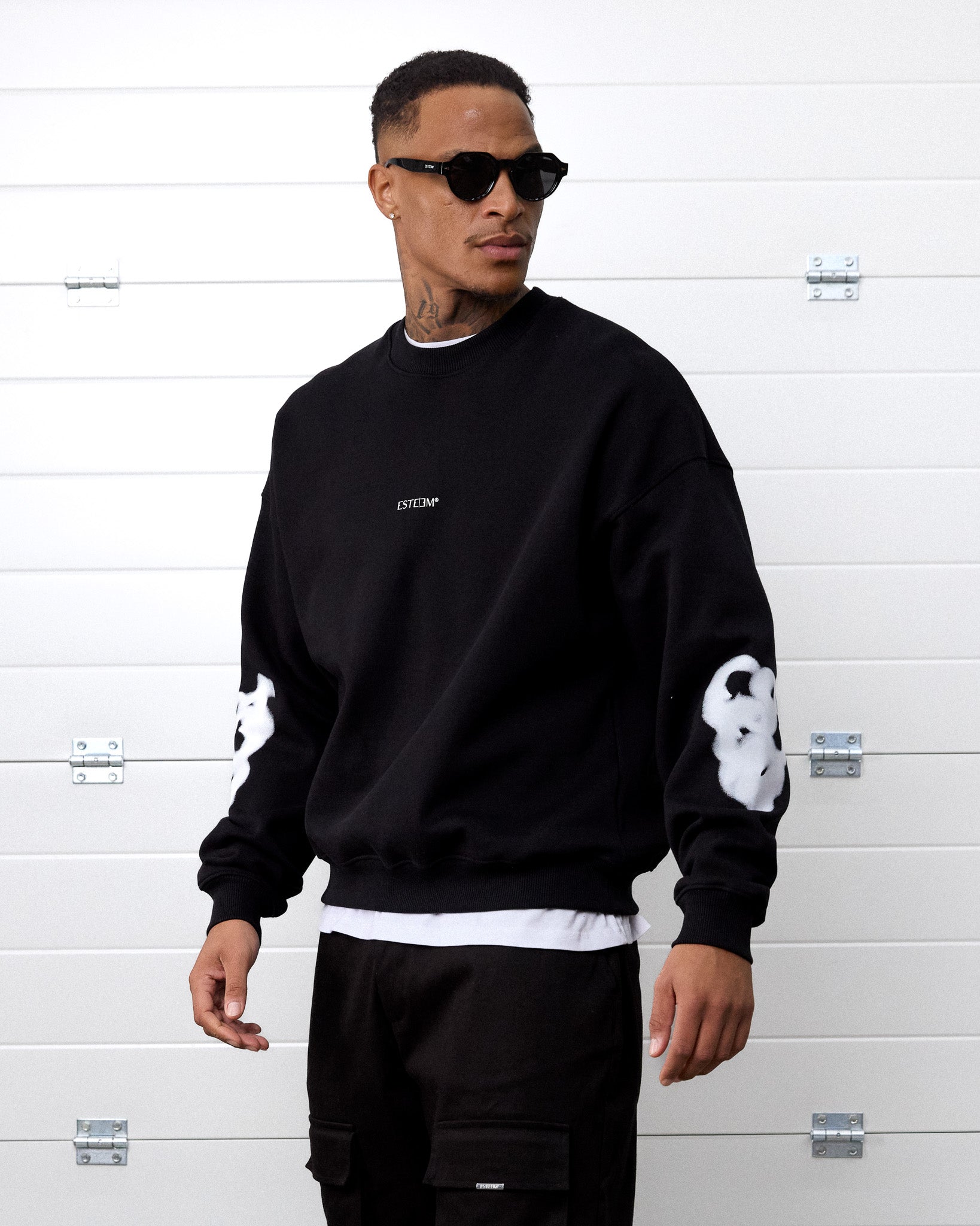 • BLACK BLURRED HEARTS OVERSIZED SWEATER