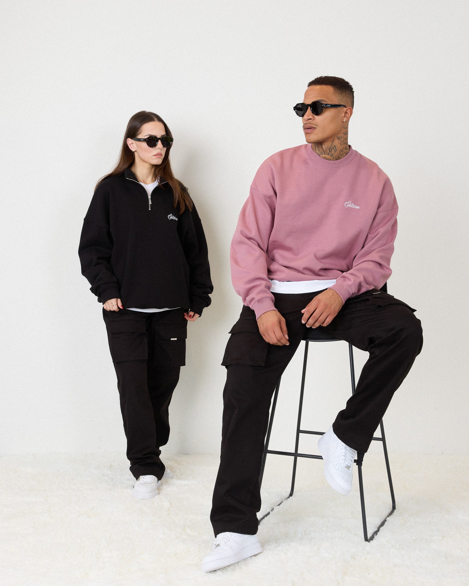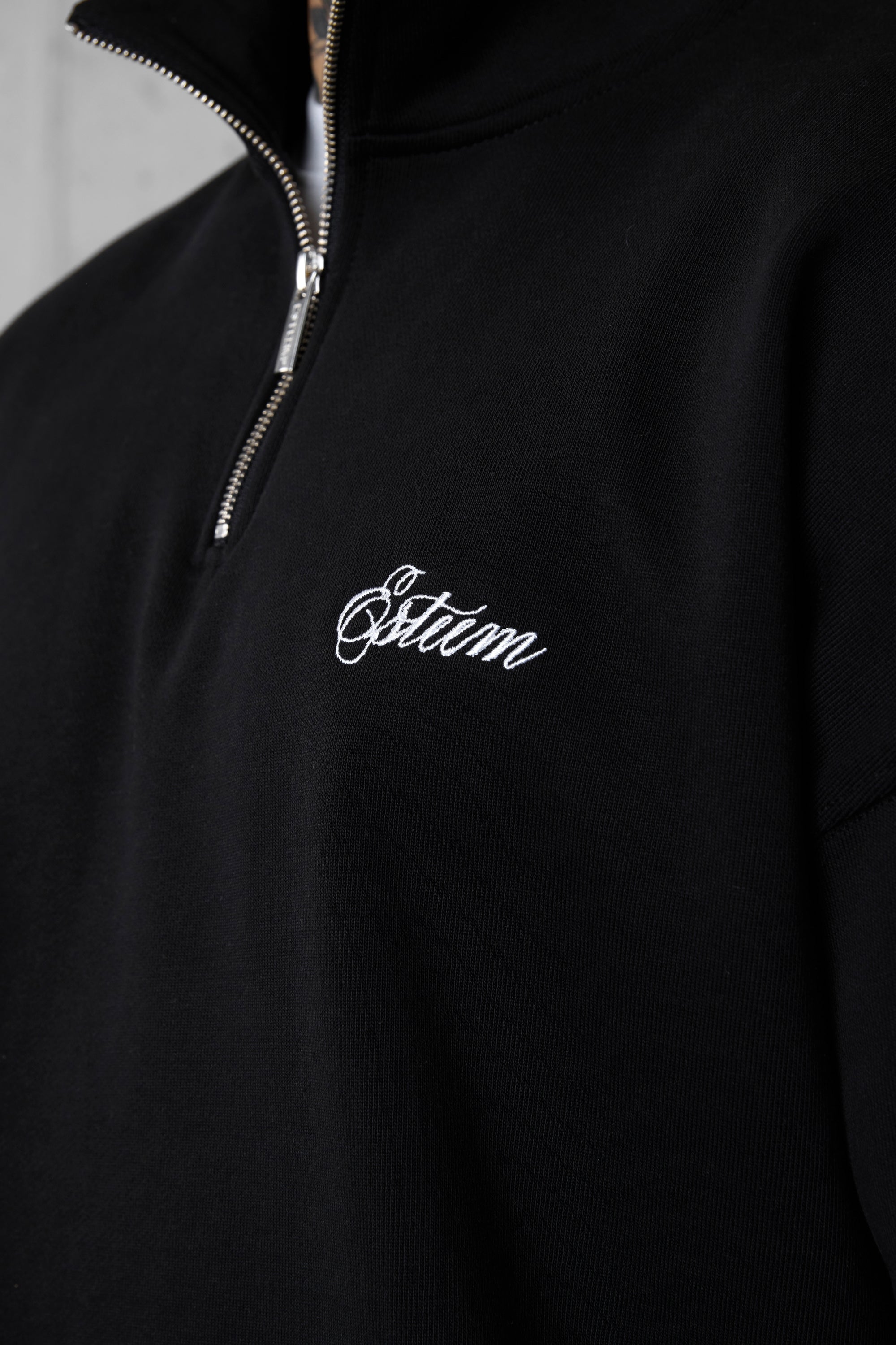 BLACK SIGNATURE OVERSIZED HALFZIP SWEATER