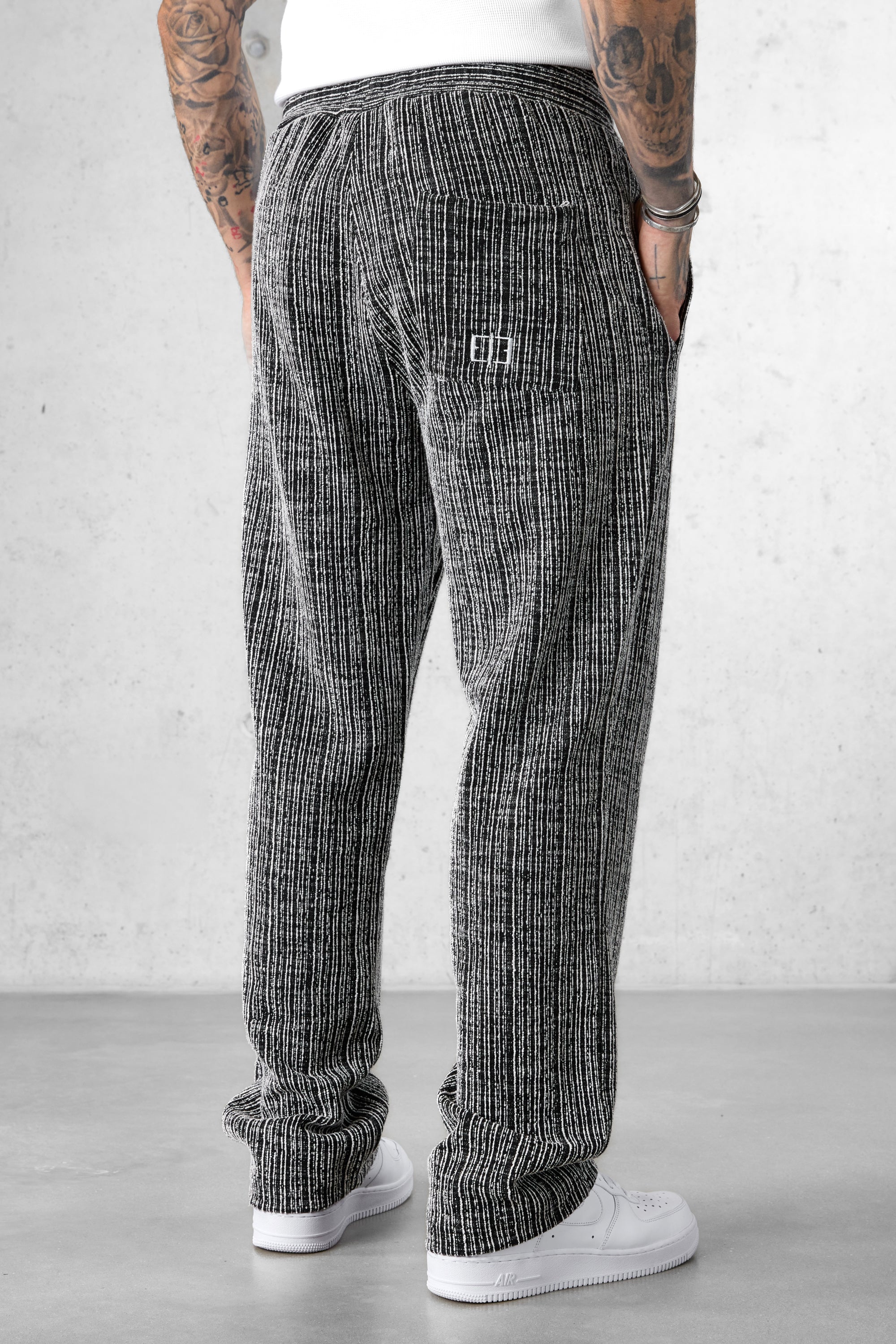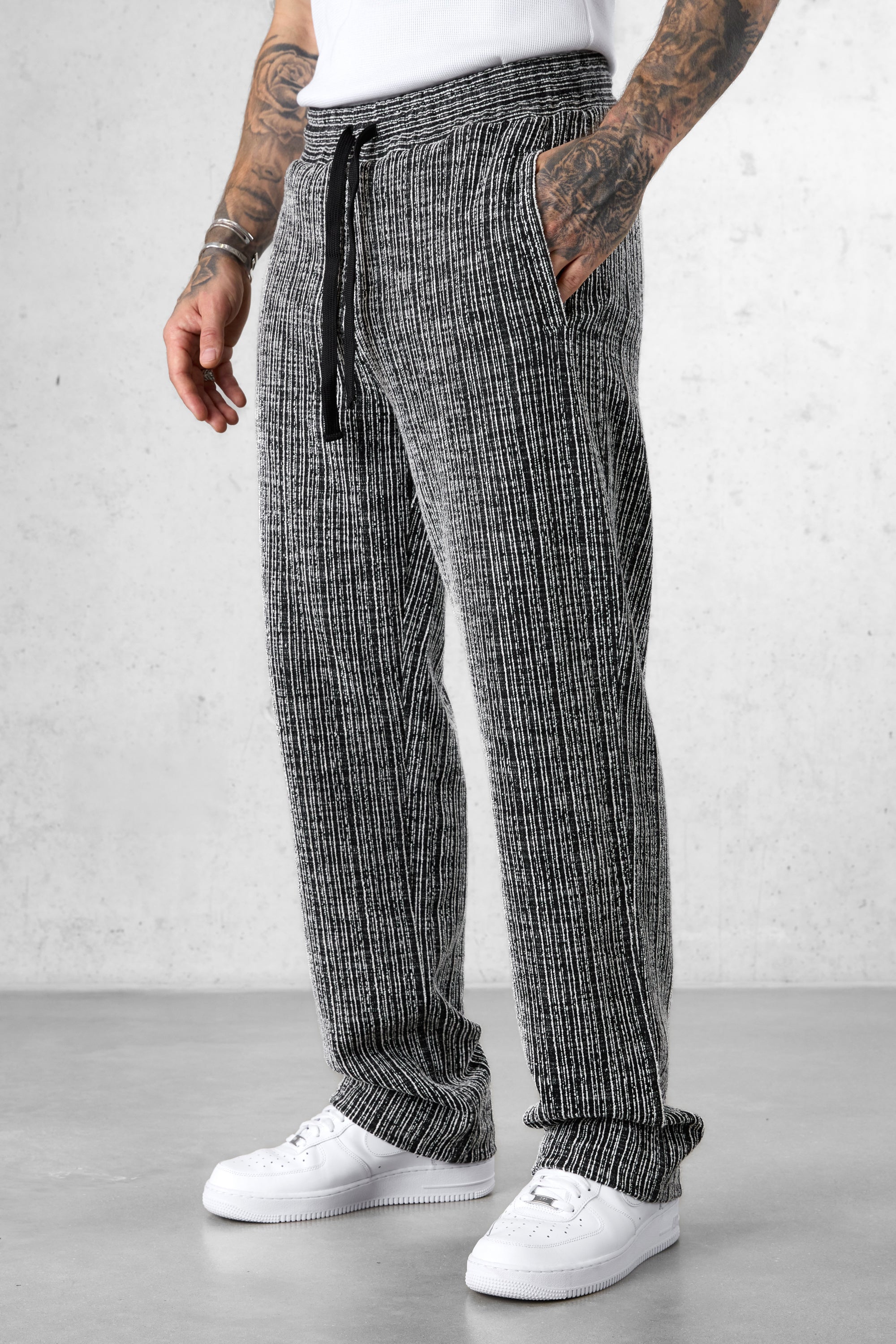 BLACK STRIPED JACQUARD LOOSE PANTS