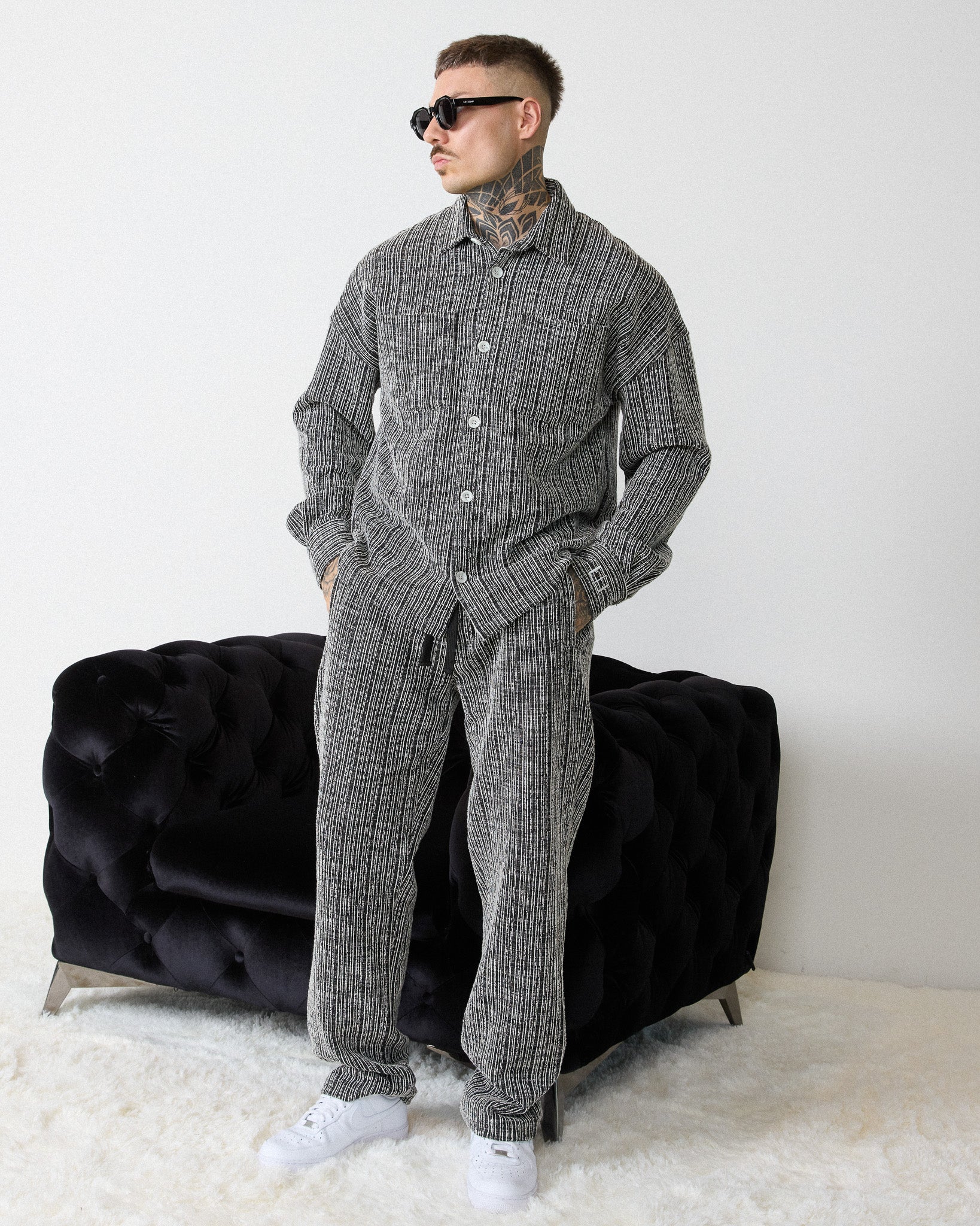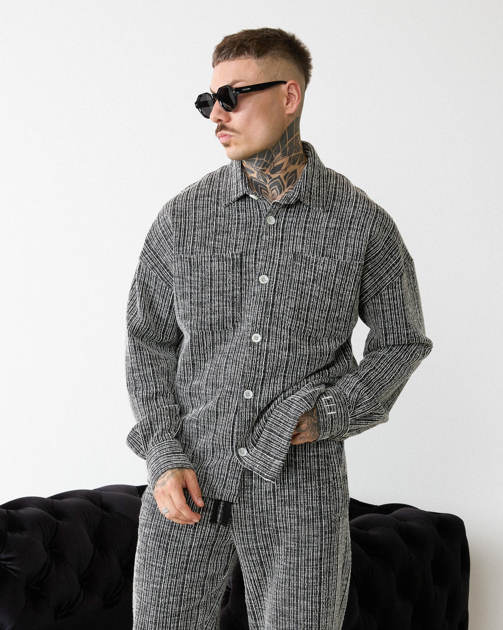 BLACK STRIPED JACQUARD OVERSIZED SHIRT