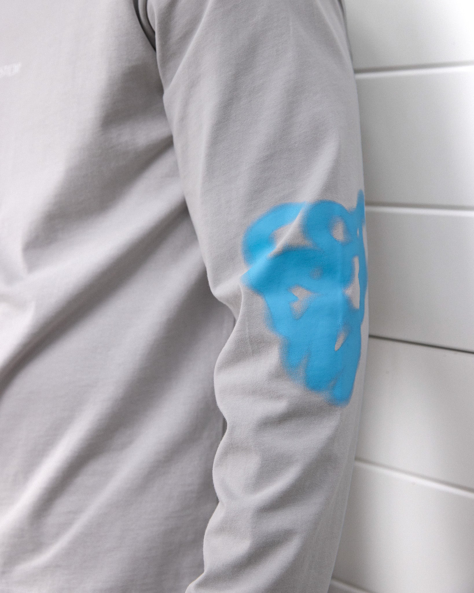 Un imprimé sur manches qui transforme le lettrage en un motif flou et créatif avec une forme de cœur subtile — présent sur les deux manches.