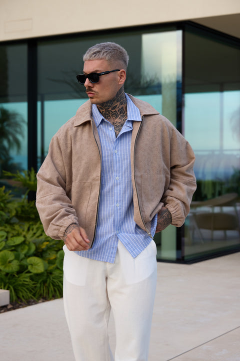 Veste d’été couleur stone – motif marqué sur un mélange de coton de haute qualité.
