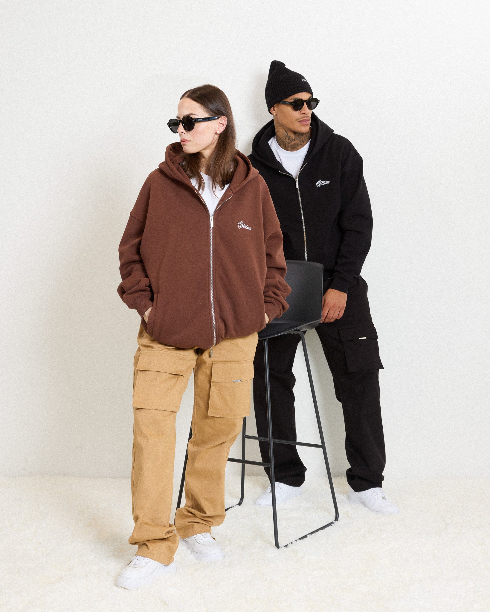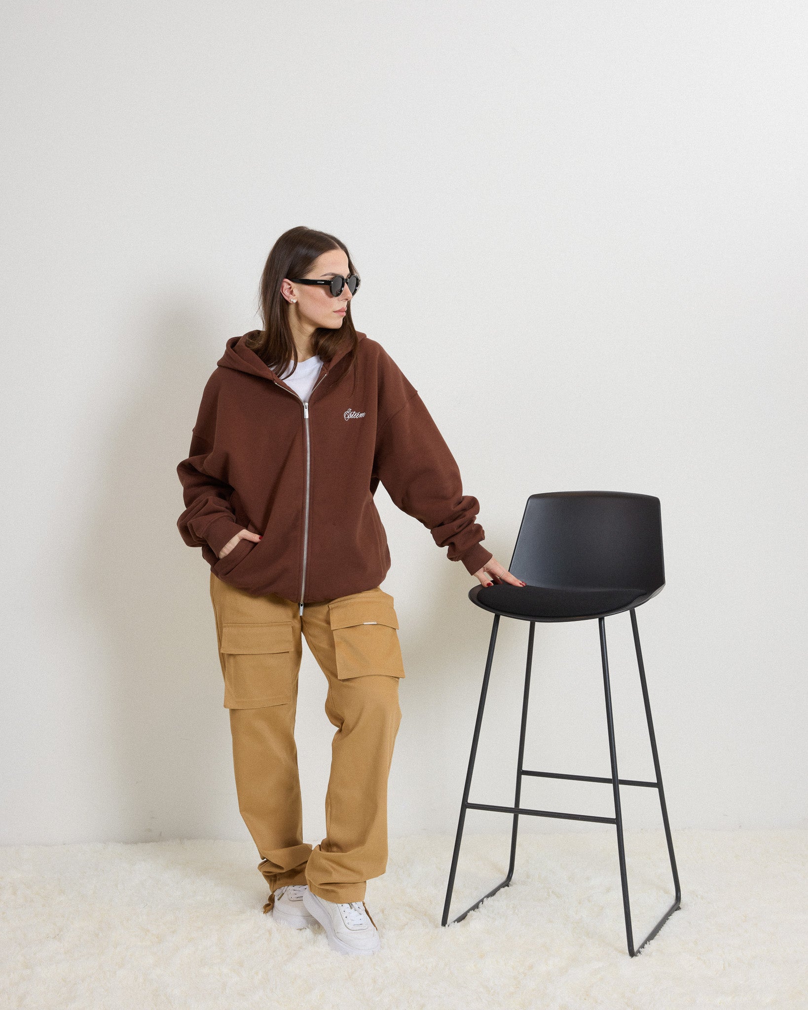 DOWNTOWNBROWN SIGNATURE OVERSIZED ZIP HOODIE