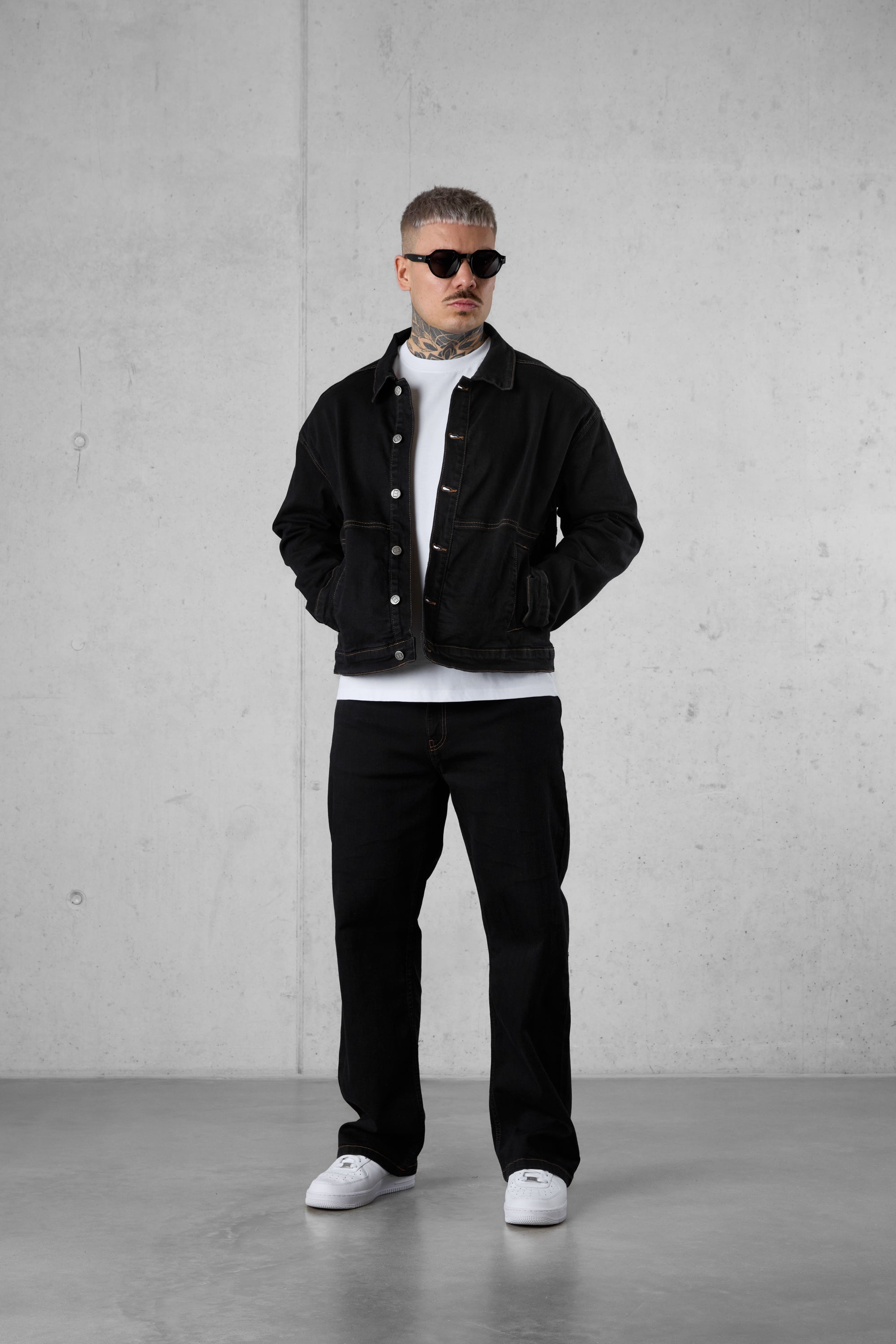 WASHED BLACK CONTRAST JEANS JACKET